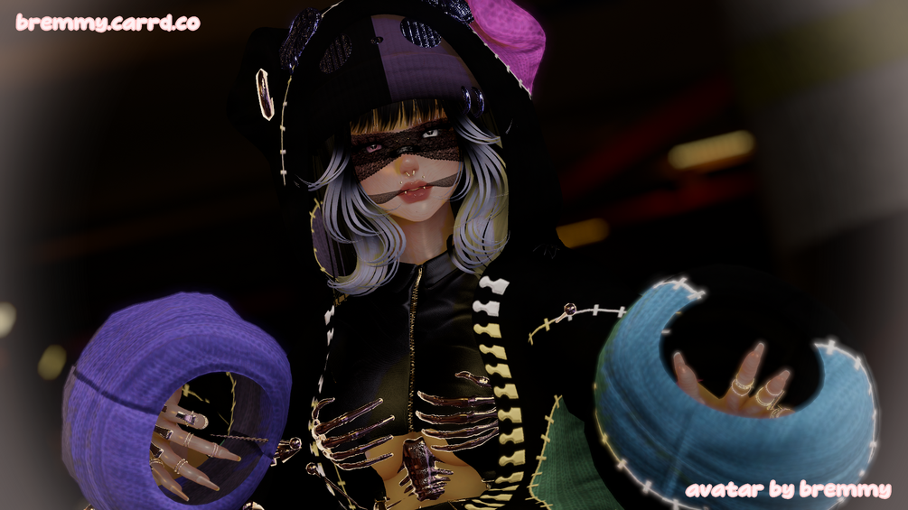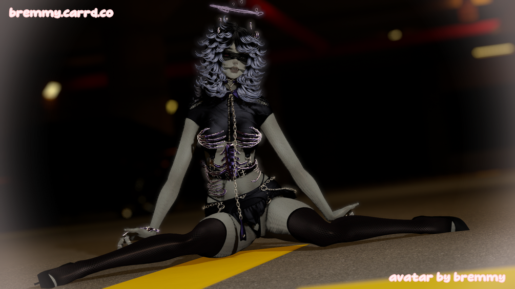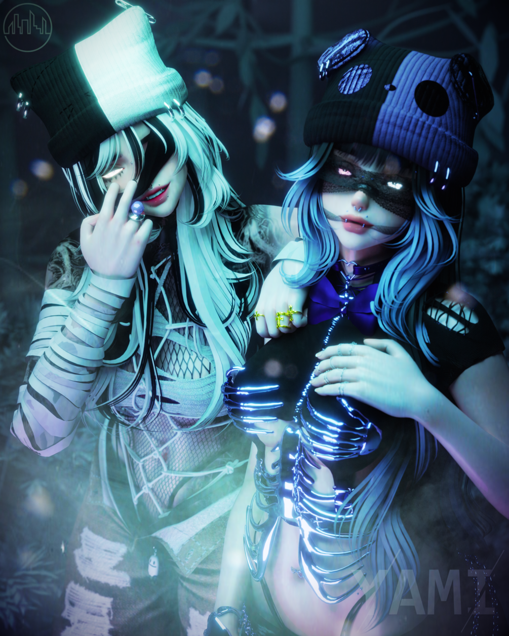 Head + Edit + Bremmy, Body, Dog Set, Jackets + Beanie + Gag/Blindfold, Bow, Collar, Skeleton Set, Skirt, Shirt, L Hair + Messy Hair + Jeans, hair textures, Squid Hair + Heels, Pasties, Tattoo, Eyes, Halo, Rings, Ring Pop, Props, Render by Yami, icons drawn by Bremmy