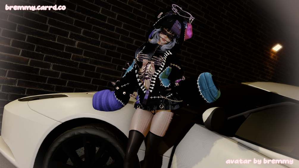 Head + Edit + Bremmy, Body, Dog Set, Jackets + Beanie + Gag/Blindfold, Bow, Collar, Skeleton Set, Skirt, Shirt, L Hair + Messy Hair + Jeans, hair textures, Squid Hair + Heels, Pasties, Tattoo, Eyes, Halo, Rings, Ring Pop, Props, Render by Yami, icons drawn by Bremmy